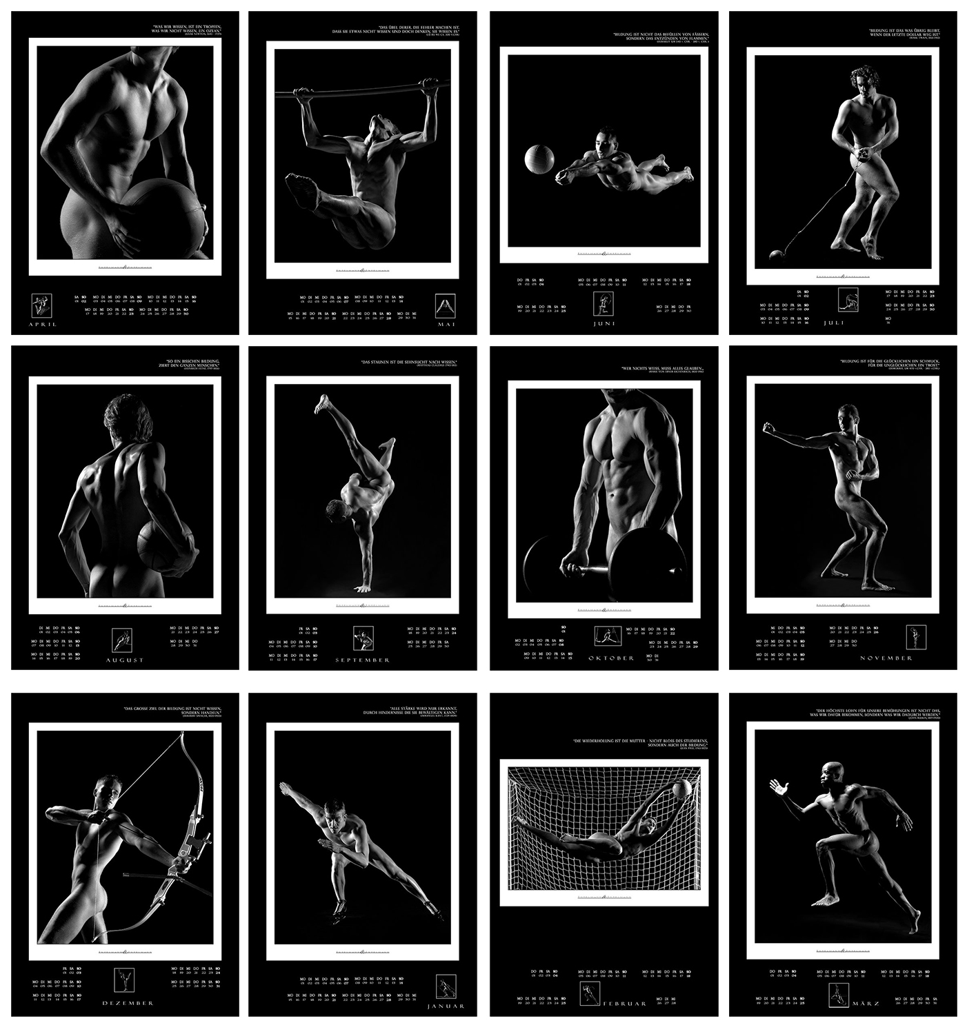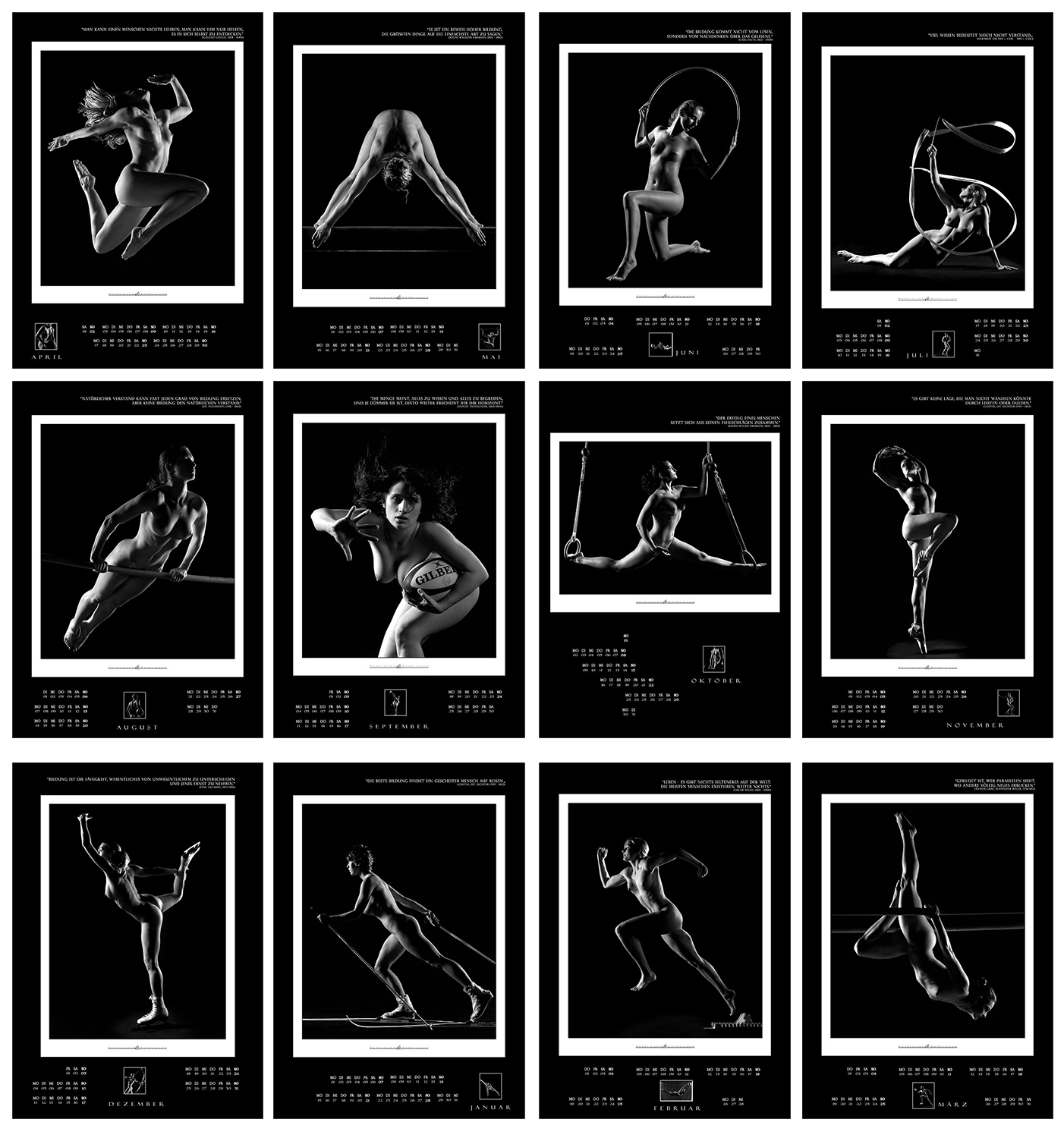 25 hoch-ästhetische Aufnahmen für den Wendekalender sind entstanden. Im imposanten A2-Format werden jeden Monat gleich 2 Kunstaktaufnahmen geboten.