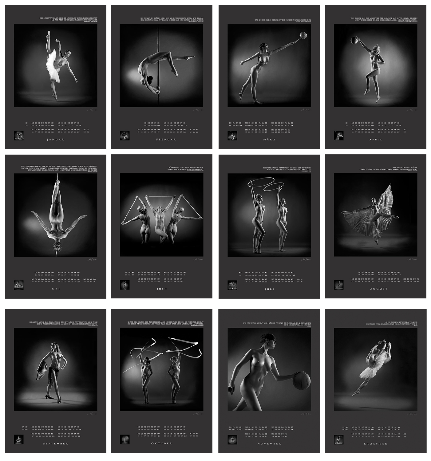 Im Jahre 2004 erschien der Kalender "Semesterakte" erstmalig. Bremer Sportstudenten stellten sich als Modelle für den Kunstaktkalender "Semesterakte" zur Verfügung um gegen den Bildungsnotstand zu demonstrieren. In den Jahren darauf folgten die Studenten der Universitäten Kiel, Berlin, Köln und Bielefeld. In diesem Jahr nahmen Studenten aus Bremen, Heidelberg, Magdeburg, Bielefeld, Kiel und der Schweiz teil. Ein Teil des Erlöses kam jeweils verschiedenen Bildungszwecken zugute und half, Umweltschutzprojekte zu unterstützten - wie zum Beispiel die Aufforstung von Borneos Regenwäldern oder die Ausbildung eines Wildhüters in Afrika. Das Außergewöhnliche in dieser Reihe ist, dass jeder Monat sowohl einen weiblichen, als auch auf der Rückseite einen männlichen Kunstakt zeigt. Ein Wendekalender mit 25 atemberaubenden, sportbezogenen Aufnahmen - mal sinnlich, mal dynamisch.