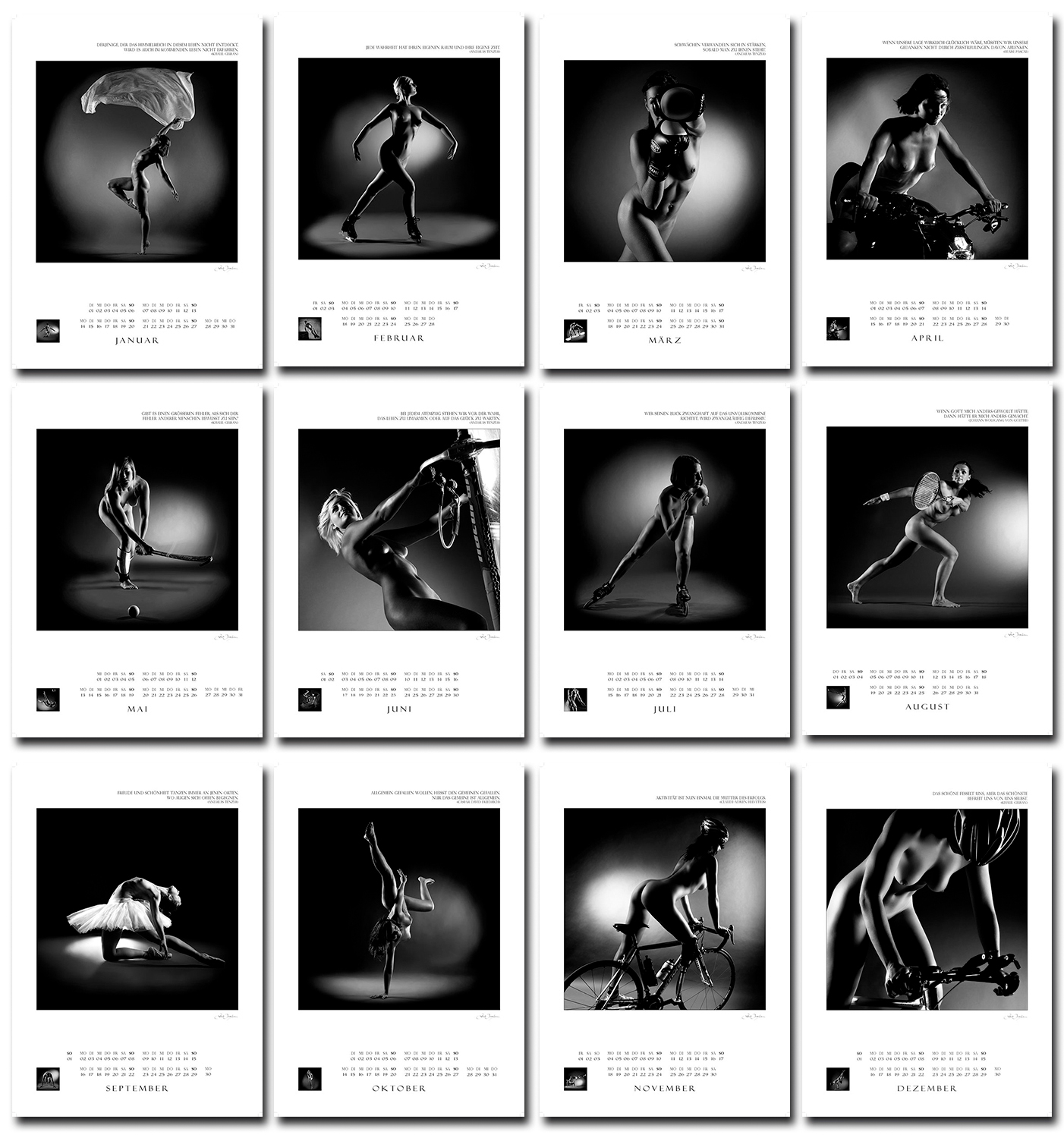 Wie auch alle anderen Vorgänger ist er ein Wendekalender mit 12 weiblichen und 12 männlichen Kunstakten.