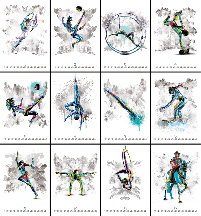 Einmalig ist, dass die Körper der nackten Sportler und Sportlerinnen kreativ in ein fantasievolles Farbspiel eintauchen.